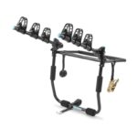 - No need to have a tow bar fitted – carrier fits around the spare wheel of your 4×4, with a strong ratchet strap, easily fitted. (wheel to be in the center of the door)