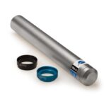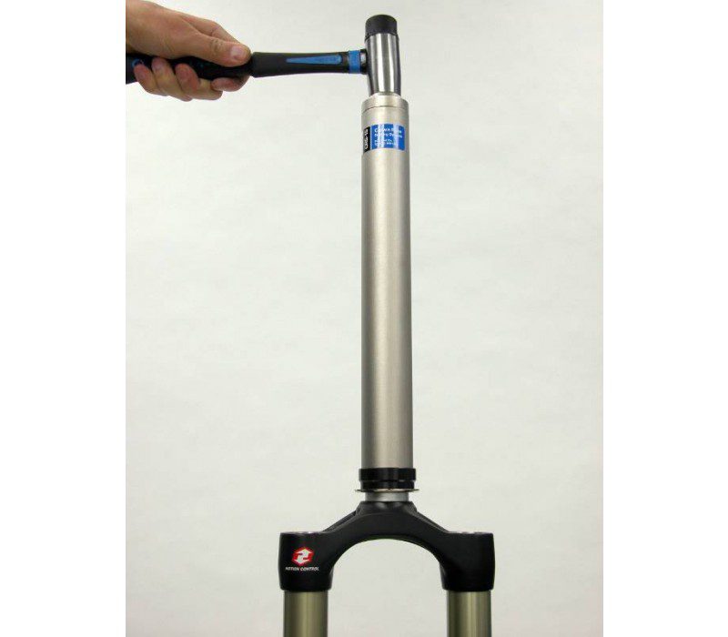 The CRS-15 uses two different insert rings to install bearing races on the 1.5″ and 1-1/4″ forks. The bearing surface is spared a direct hit by using an aluminum inserts. Using a hammer, tap firmly on the end cap of the tube and seat the race into its proper place safely and accurately. The CRS-15 will work on forks with column length of 330mm or less.
