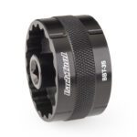 Precision CNC machined dual-sided aluminum tool for the installation and removal of 12- and 36-notch external bearing bottom brackets. Anodized for easy identification and featuring a ratchet/torque wrench compatible 3/8″ drive.