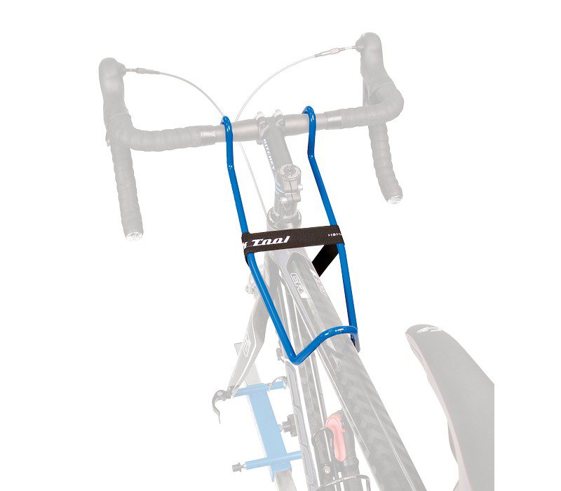 The Handlebar Holder is designed to prevent the handlebars and front wheel from rotating when a bike is mounted in a Park Tool Repair Stand.