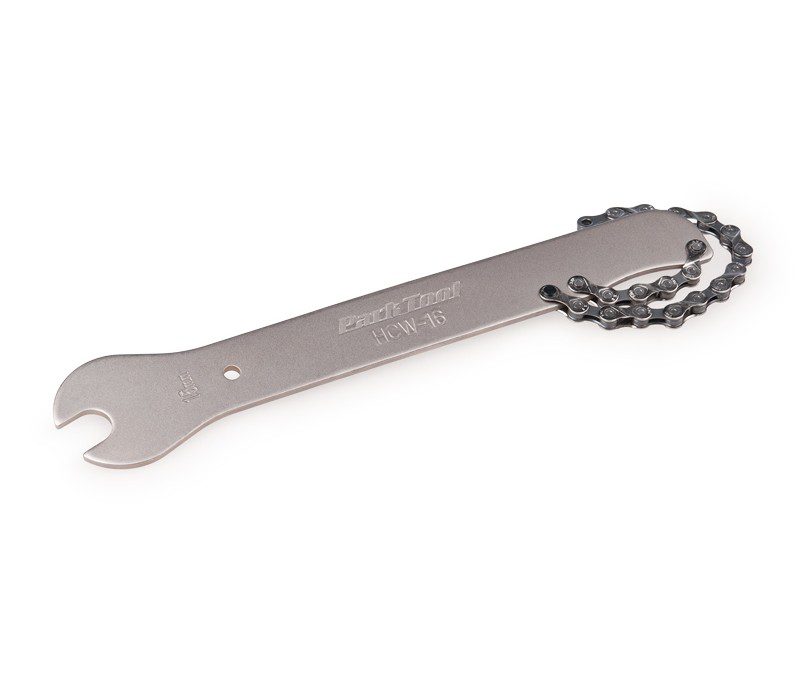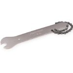 The HCW-16 is a combination pedal wrench in 15mm, and a chainwhip. Use for both pedal removal/installation and for cassette removal. 10-speed cassette compatible. The HCW-16 is 10.75″ long (27.3cm).
