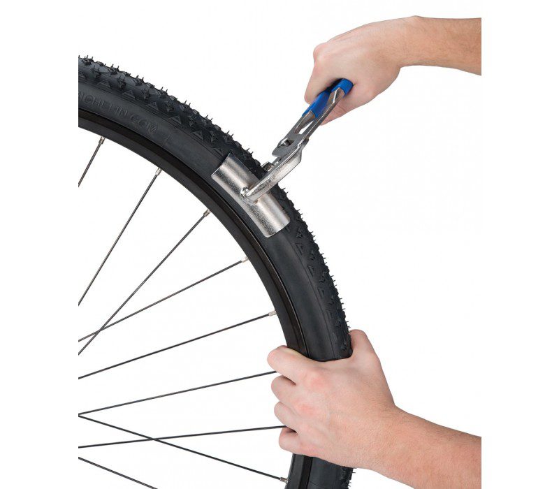 This tool is designed to quickly and easily “seat” stubborn tires. During inflation, tire beads often slip below the rim edge and are difficult to pull out. Simply place the non-slip jaws on the tire and lift out. The Park Tool Tire Seater adjusts to various tire widths. It’s chrome plated and the handles are vinyl coated for comfort.