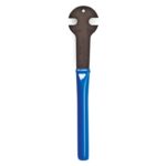 Made from Cro-Moly steel for a shop quality pedal wrench made to last. 15mm and 9/16” precision openings and a long, round, vinyl dipped handle that won’t dig into your hand like flat pedal wrenches. The PW-3 is nominally 32cm (12.5″) long. (NOTE: The 9/16″ wrench flats are found on some older bikes with one-piece cranks.)
