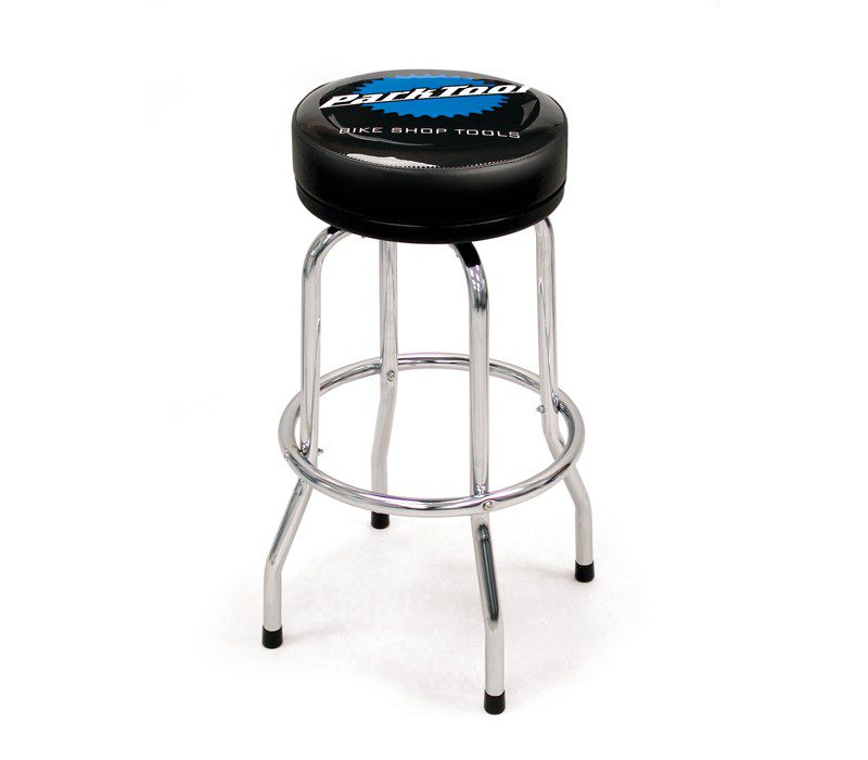 - Chrome-plated steel legs and a comfortable padded seat with a three-color Park Tool Logo