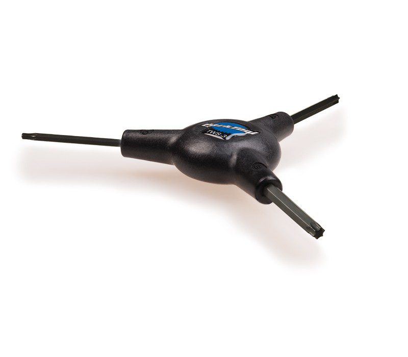The TWS-3 is a star-shaped Torx® compatible 3-way wrench. T10, T25 and T30 wrench sizes in our classic three-way “Y” design. Useful for disc rotor bolts (T25), chainring bolts (T30), and hydraulic brake work (T10).
